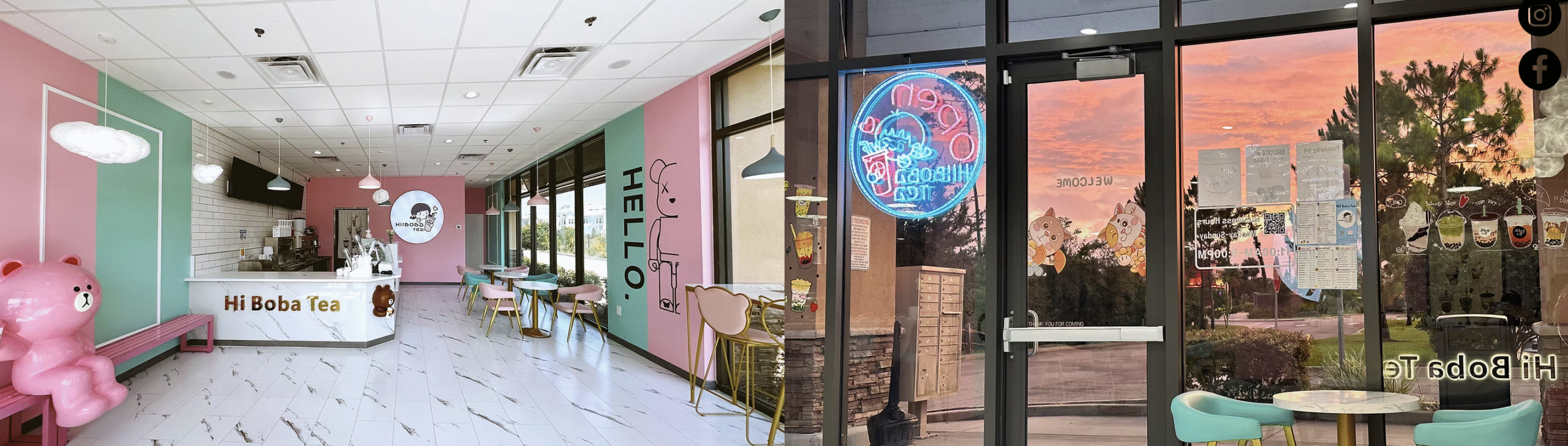 Sip, Relax, and Enjoy the Trendy Vibe at Hi Boba Tea Our shop is beautifully decorated with adorable pink cartoon bears and stylish tables and chairs, creating a cute and trendy atmosphere. Whether you’re meeting friends or enjoying some alone time, Hi Boba Tea is the perfect place to be. It’s not only offers delicious beverages but also provides a fun and stylish environment. We also offer catering order for company events, parties, birthday celebrations, or any special occasions. For group purchase we offer free delivery and discount.